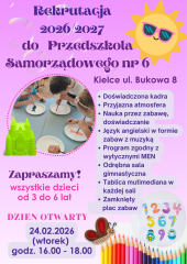 Wszystkim Radnym, którzy głosowali przeciw likwidacji Przedszkola Samorządowego nr 6 przy ul. Bukowej 8 na osiedlu Szydłówek w Kielcach, Rodzicom naszych przedszkolaków, Mieszkańcom okolicznych bloków, którzy podpisali petycję przeciw likwidacji naszej placówki oraz osobom z ugrupowania "Razem", którzy pomagali i wspierali nas w tej walce. Dzięki wspólnym działaniom dzieci będą miały od września nadal swoje miejsce w naszej placówce, która jest dla nich drugim domem i bezpieczną przystanią.