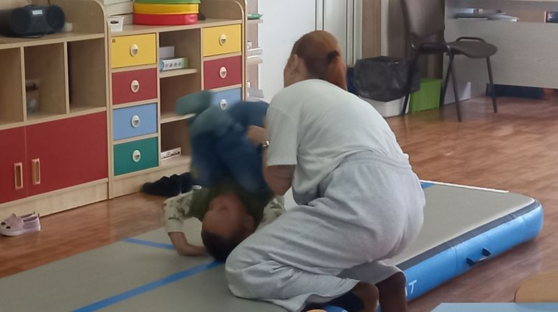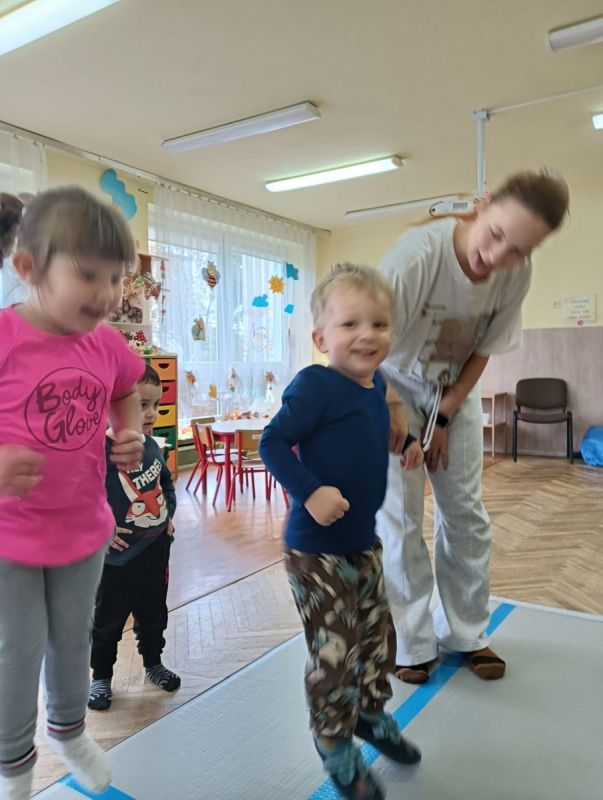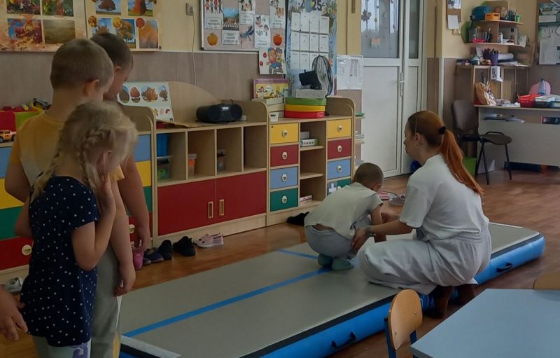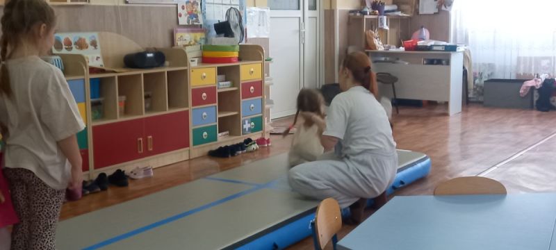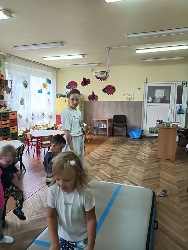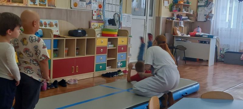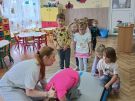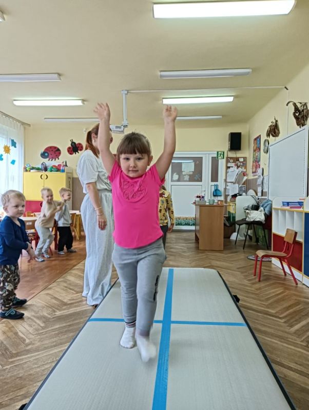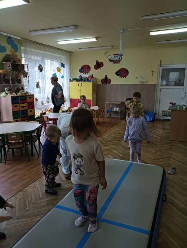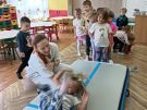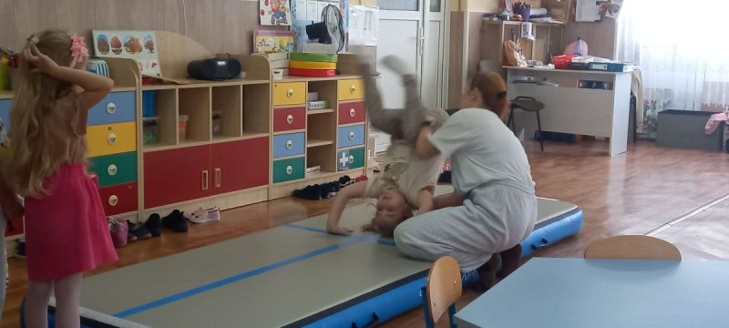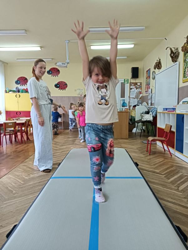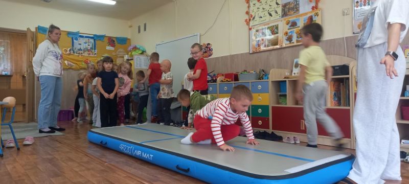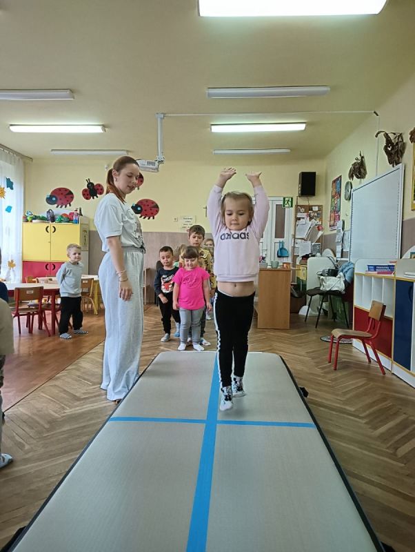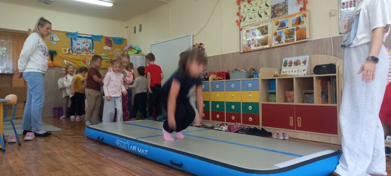 We wtorek 23.wrzesnia dzieci z przedszkola miały zajęcia pokazowe prowadzone przez profesjonalną nauczycielkę gimnastyki i akrobatyki. Dzieci poprzez zabawę na materacu przekonały się o odlotowej przyjemności z ćwiczeń gimnastycznych.