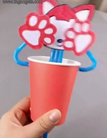 6. Teraz wystarczy poruszać dolną częścią słomki i zabawka staje się ruchoma: porusza łapkami i zamyka oczka.