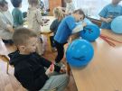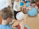 Rozwijajac u dzieci motorykę małą oraz koordynację wzrokowo-ruchową wykorzystane zostały balony. Z nich powstały różnorodne prace plastyczne. A oto przedstawiamy z jakim zaangażowaniem pracowaly dzieci.