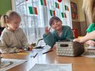 Dzieci robiły flagi Irlandii, szukały 3-listnych koniczynek oraz kolorowaly wizerunku Luprechauna.