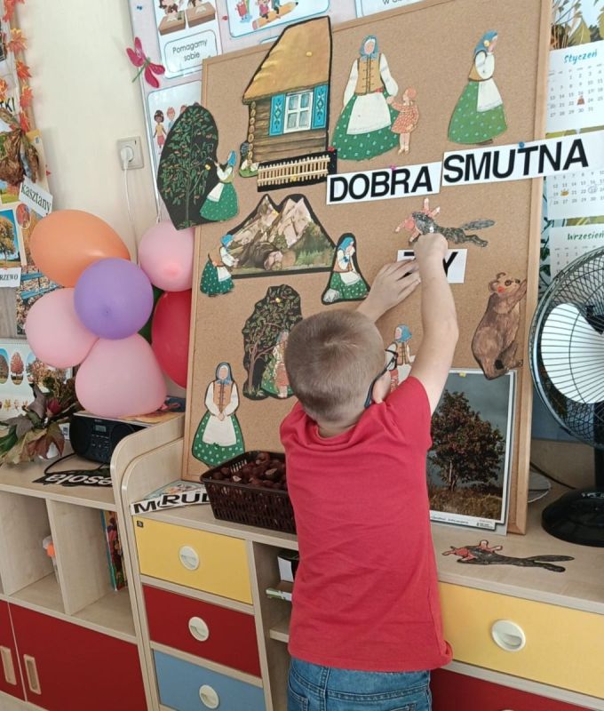 W piątkowe dopołudnie 26.września dzieci z gr II wysłuchały bajki ,, Jarzębinka ". Główni bohaterowie- babcia Olena i Jarzębinka to postacie obdarzone ciepłem, dobrocią, życzliwością. Ale jest też zły i podstępny wilk. Jednak wszystko kończy się dobrze - zło przegrywa a dobro wygrywa.