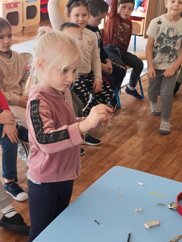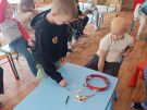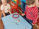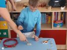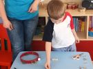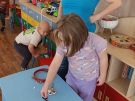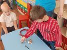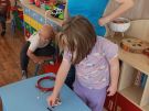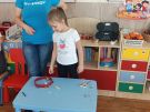 Przy okazji poznawania kolejnej literki dzieci z grupy "Słoneczek" przeprowadziły serię eksperymentów z magnesem. Nauka przez zabawę i przeprowadzanie doświadczeńrozbudza ciekawość i zachęca dzieci do poznawania tego, co nieznane. Każdy miał szansę sprawdzic swoje możliwości w nawlekaniu igly na nitkę.