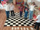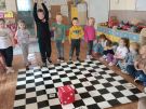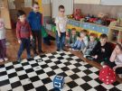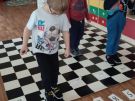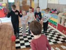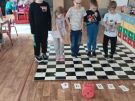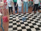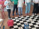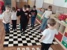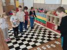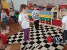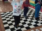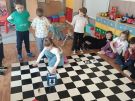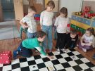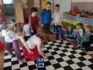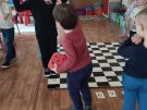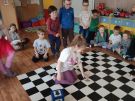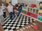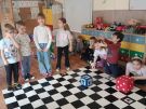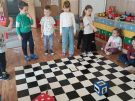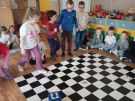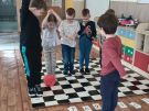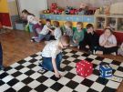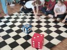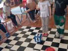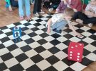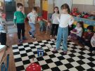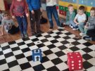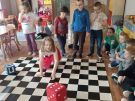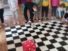 Utrwalajac umiejętności matematyczne, motorykę małą i dużą oraz logiczne myślenie przedszkolaki świetnie bawiły się z wykorzystaniem maty i dwóch kostek. Rywalizacja skupiała się na zasadach fair play. Zabawa nie miała końca i wszyscy fajnie się bawili.