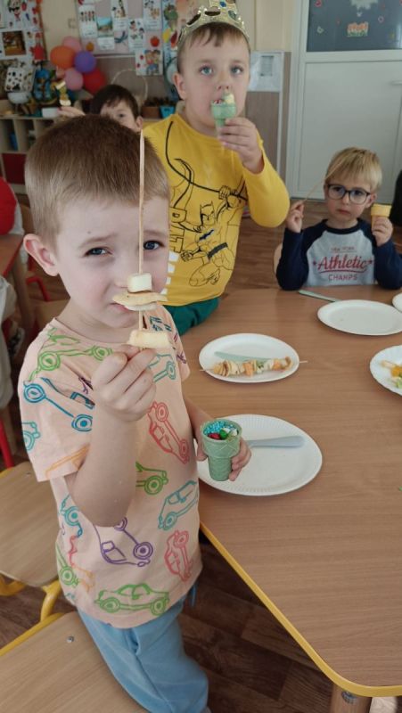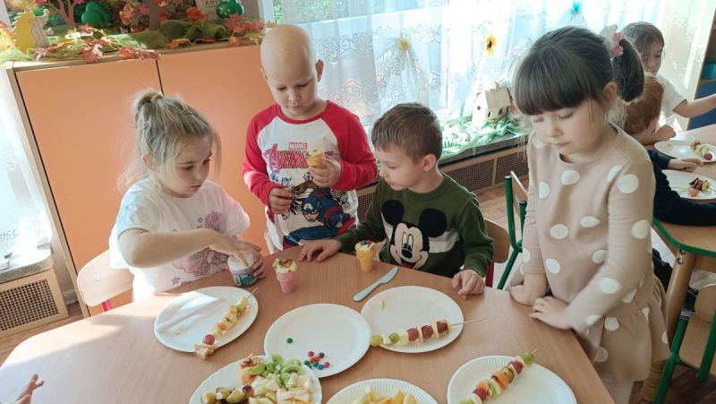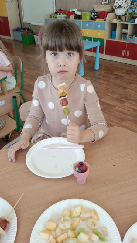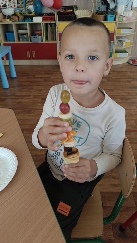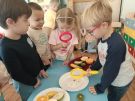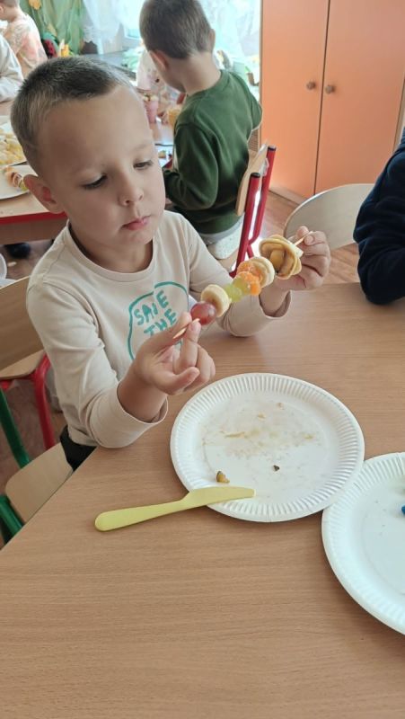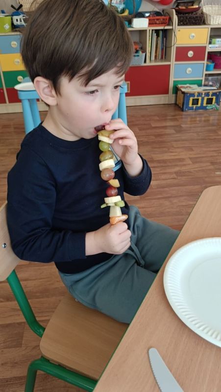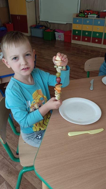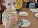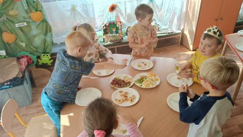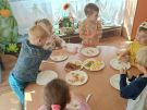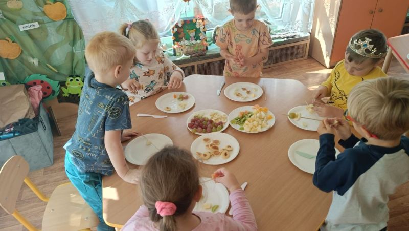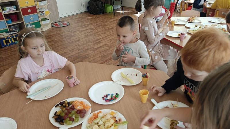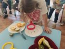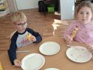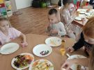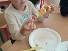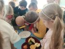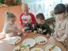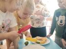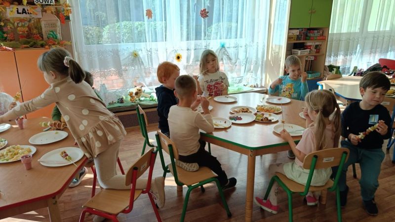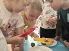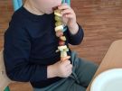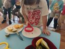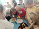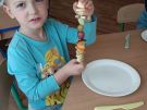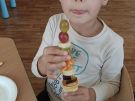 ,,Najlepiej smakuje to co się samemu przygotuje". Rozmawiając o darach z jesiennego sadu i ogrodu przedszkolaki z gr II przyniosły do przedszkola różnorodne owoce z których tworzyły smakowite potrawy. Były więc szaszłyki i owocowe lody. Nie zabrakło kolorowych dodatków. Dzieci z zapałem tworzyły i zjadały wykonane przez siebie przysmaki. A oto jak pracowały....