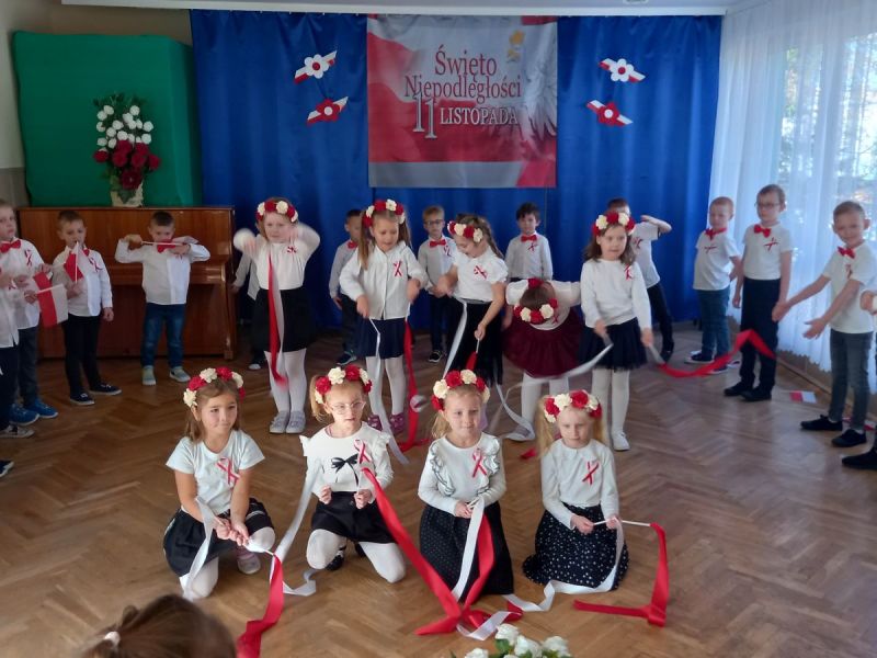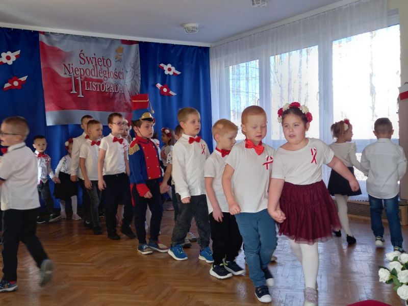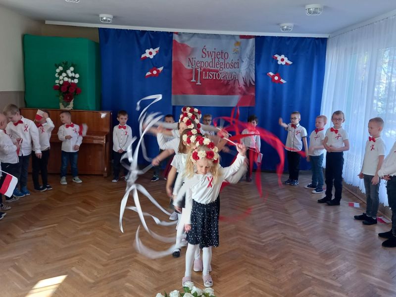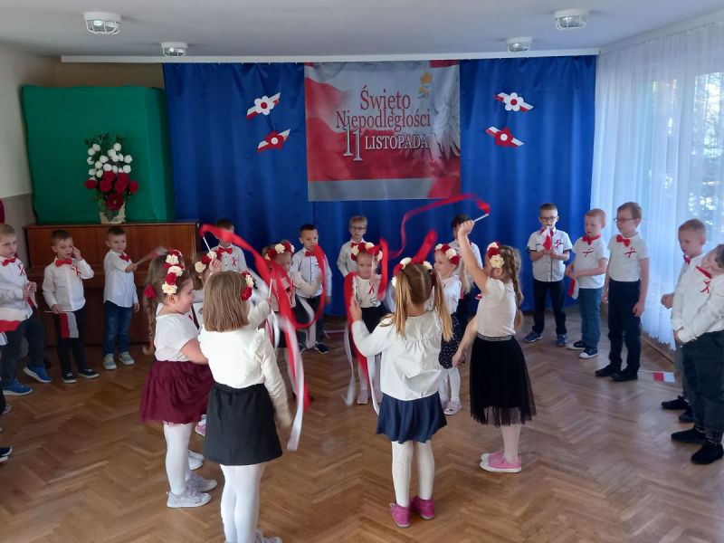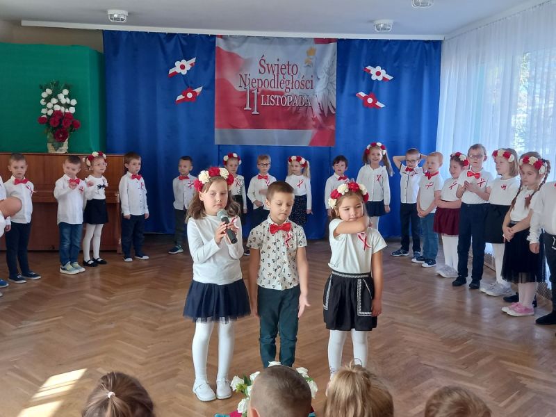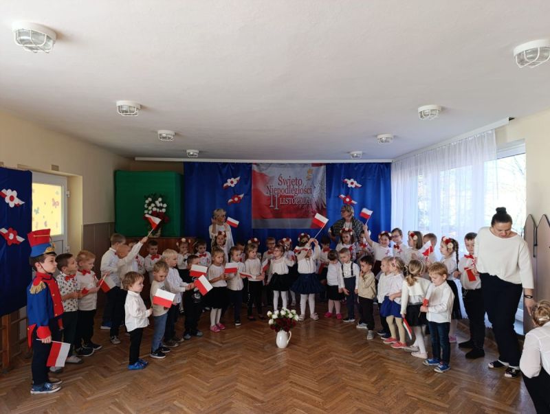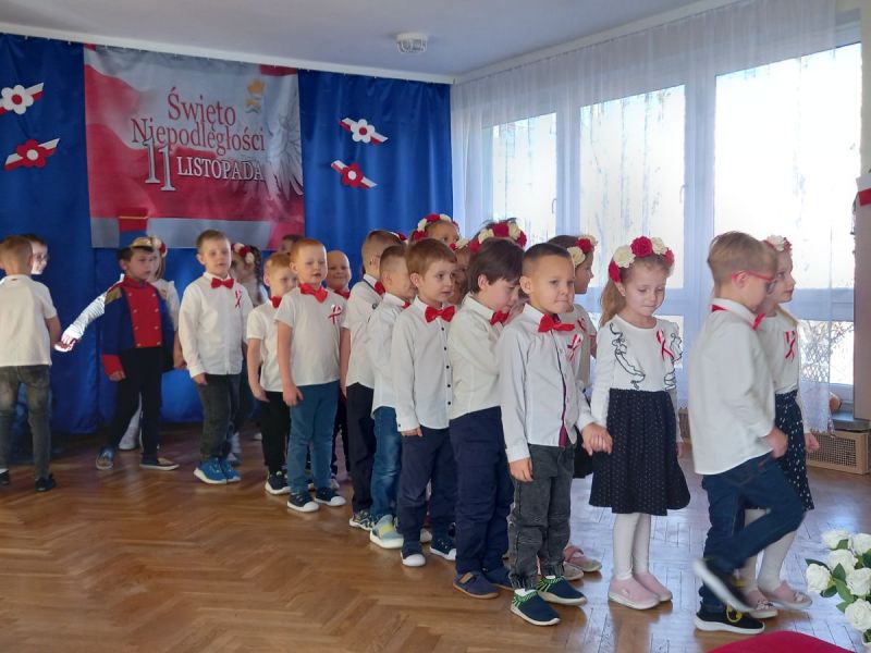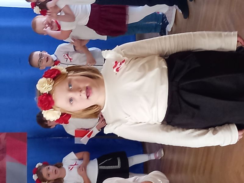 W piątek 7 listopada 2025 r. przed Narodowym Świętem Niepodległości o symbolicznej godzinie 11:11 wspólnie zaśpiewaliśmy hymn. Aby upamiętnić tę szczególnie ważną dla Polaków rocznicę dzieci z gr II słowami wierszy , piosenek i tańcem uczciły to ważne dla wszystkich Polaków święto.