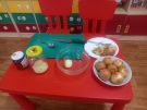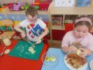 Przy okazji wprowadzania nowej literki oraz wciąż powracającego tematu dbania o odporność i zdrowie, dzieci z grupy Słoneczek poznały właściwości zdrowotne cabuli oraz miodu. Dzieci obierały i kroiły cebule, wrzucały je do słoika i zalewały miodem. Obserwowaliśmy przez 2 dni proces tworzenia się syropu, który ochotnicy mogli spróbować.