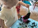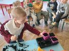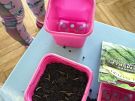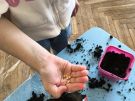Dzisiaj Biedroneczki zakładały swój mały ogródek w sali. Posadziły z nasionek: ogórki, pomidory, paprykę i kwiaty. Podczas pracy miały dużo frajdy. Teraz będą obserwować wzrost roślinek, co również jest fascynującym procesem nauki.
