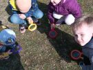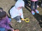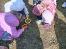 Korzystając z uroków budzącej się do życia wiosny nasze przedszkolaki na placu zabaw oglądały przez szkło powiększające pierwsze jej oznaki. Miały przy tym mnóstwo radości. Znalezione zostały juz pierwsze kwiaty oraz przebijające się w stronę słońca kiełkujące roślinki i trawy.