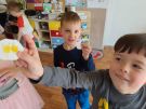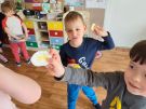 Po powrocie do przedszkola po Świętach zajęcia poświęciliśmy na zabawy związane z Wielkanocą. Kurki znosiły jajka, króliczki je zbierały, a każdy dostawał naklejkę oraz kolorowanki o tematyce świąt Wielkiej Mocy. Pomimo nielicznego grona, zabawa była przednia, a okrzyki radości nie wskazywały na to, żeby ktokolwiek został jeszcze jeden dzień dłużej w domu.